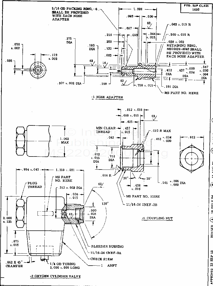 MS22012 Valve - High-Pressure Oxygen-Cylinder, Automatic Opening (S/S By Mil-Prf-8622)
