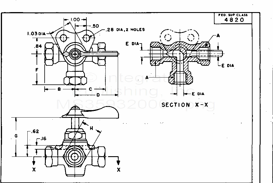 MS35932 Cock, Plug, Three Way, Threaded Type, 125 P.S.I. (S/S By A-A-59440/6)